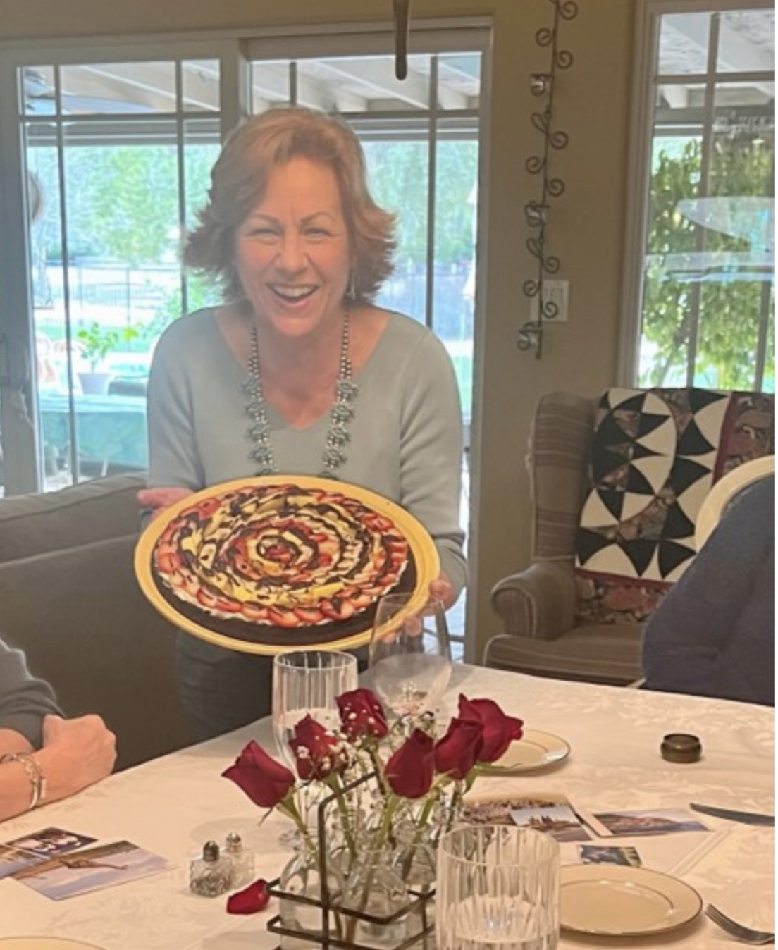 Lora S holding her banana split brownie pizza (pictured above) and