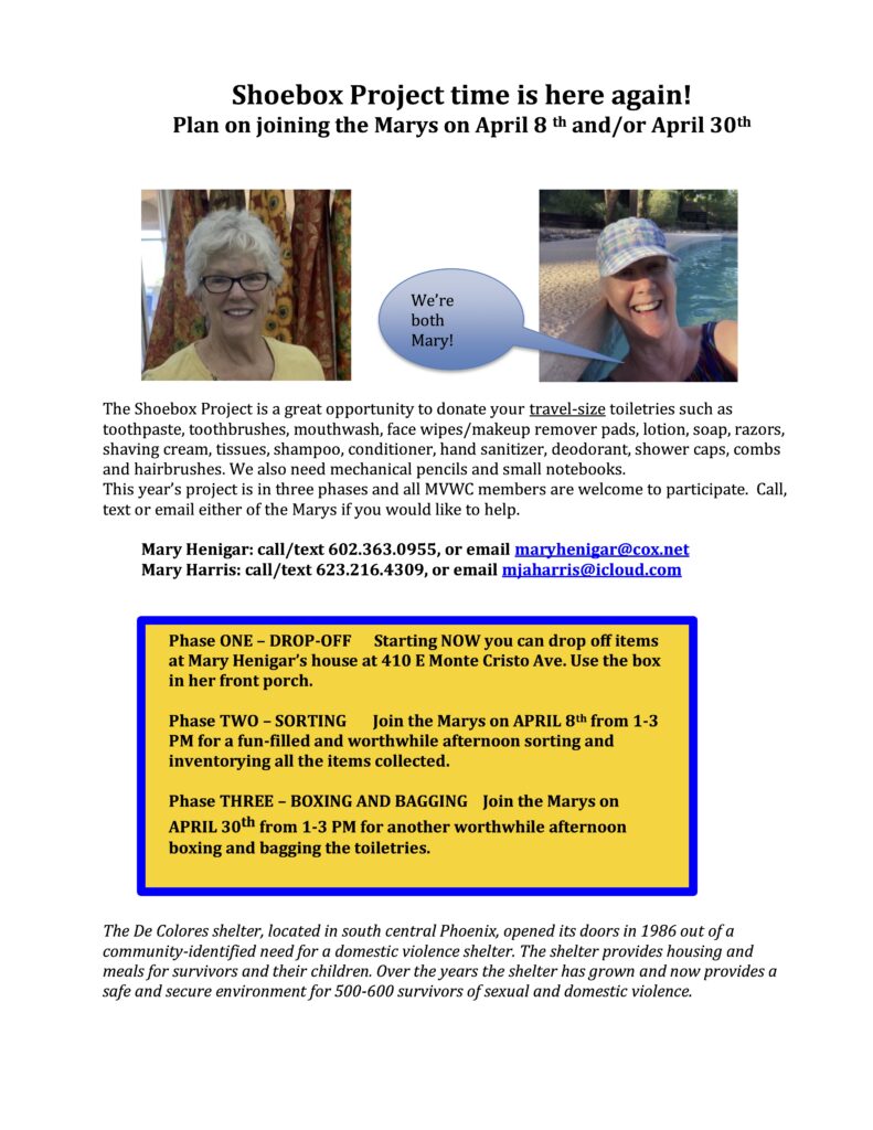 Please join us as we gather and box toiletries for DeColores Shelter. Thank you in advance for supporting this valuable project!